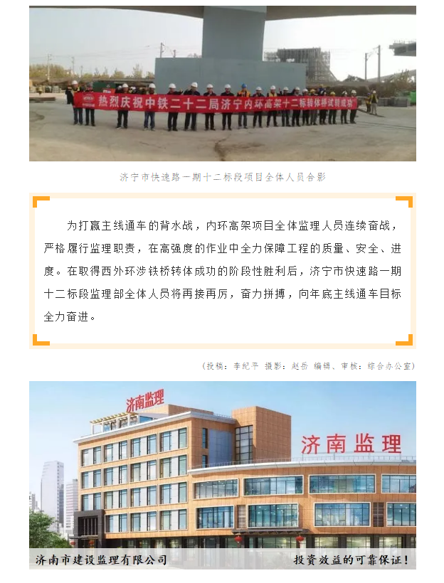 濟(jì)寧市內(nèi)環(huán)高架項(xiàng)目西外環(huán)涉鐵轉(zhuǎn)體橋成功轉(zhuǎn)體