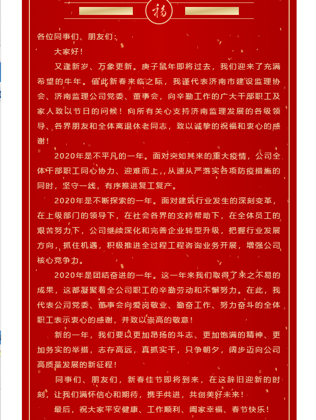 凝心聚力 逐夢(mèng)前行——濟(jì)南監(jiān)理黨委書(shū)記、董事長(zhǎng)林峰春節(jié)致辭